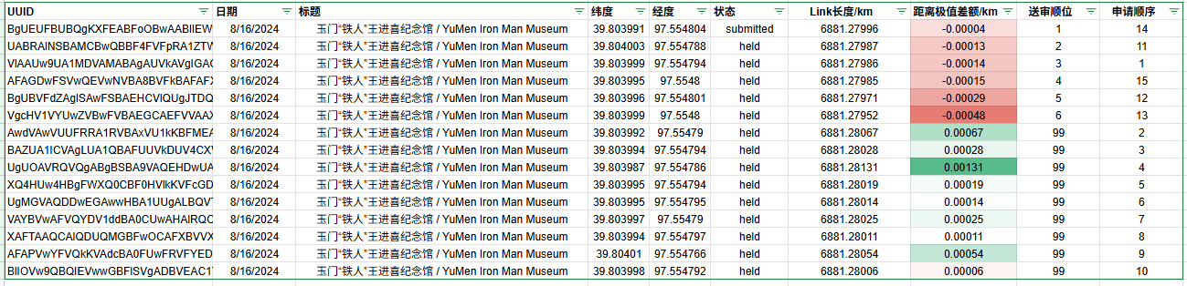 就这样,在用光了仅剩的15个申请额度后,得到了一个最迫近6881.28km的申请,距离极限42mm。
