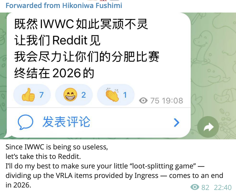 于是@Xyinkl转到了另一个Ingress常见的聊天群组,发布了自己的反击。