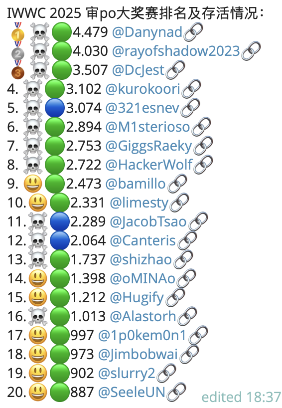 IWWC群内,有人反馈,IWWC2025年度的RECON榜单前20,有13个账号此轮被官方封禁。