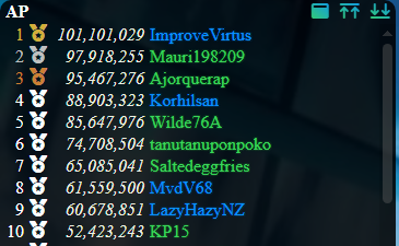 榜首:ImproveVirtus,增量 101,101,029 AP