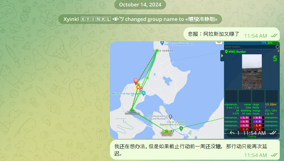 从2024年10月11日,Unalaska再次被绿,到2025年9月初被蓝军恢复。