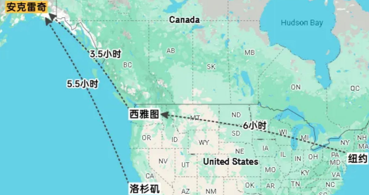 2.洛杉矶飞安克雷奇,也是阿拉斯加的最大城市。直飞6小时,单程算3000。