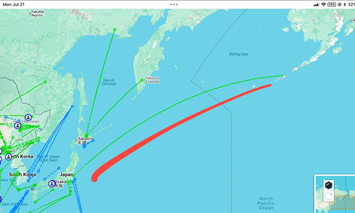 7月份还出现了一条从阿拉斯加到日本的长Link