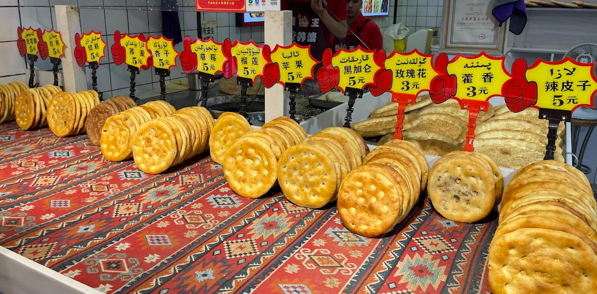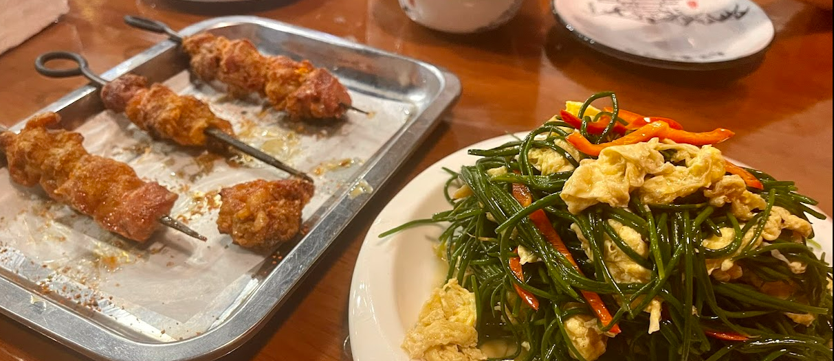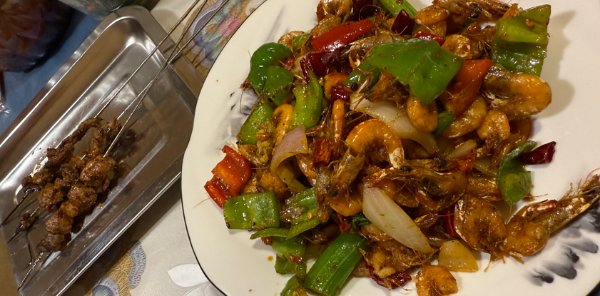 当晚,找了个看似正宗但其实并不的新疆馆子吃了个椒麻鸡、莲花白炒馕、俩串。