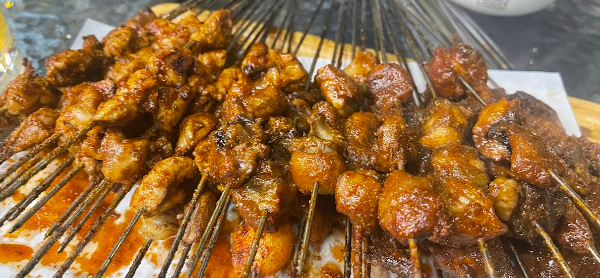 9月9日傍晚,@Xyinkl三人在出发玉门前,找了个新疆烧烤,吃之。馕包肉也还不错。